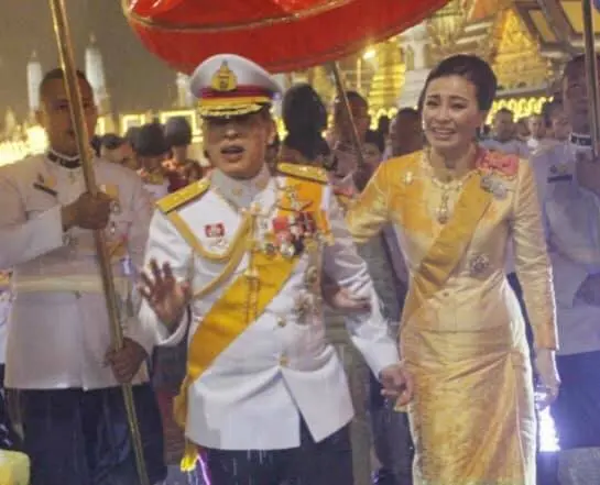 พระบาทสมเด็จพระเจ้าอยู่หัว และสมเด็จพระนางเจ้าฯ พระบรมราชินี ทรงพระดำเนินฝ่าสายฝนทักทายพสกนิกรที่มารับเสด็จนอกรั้วพระบรมมหาราชวัง