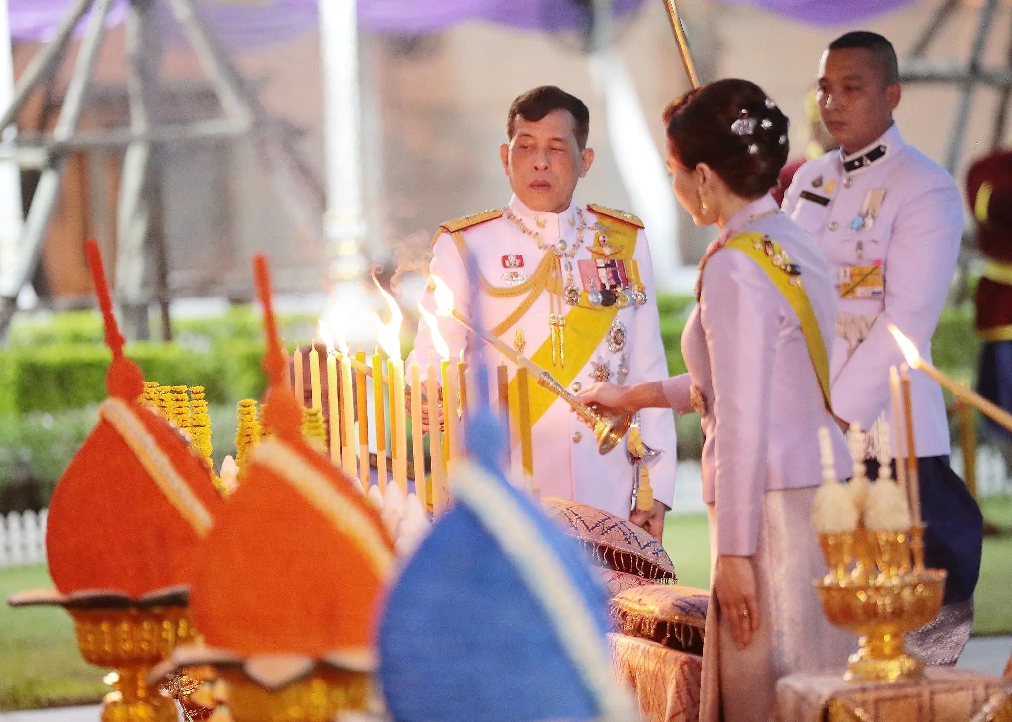ครั้นเสด็จถึง พระบาทสมเด็จพระเจ้าอยู่หัว ทรงวางพุ่มดอกไม้ส่วนพระองค์และพุ่มดอกไม้ของสมเด็จพระนางเจ้าสิริกิติ์ พระบรมราชินีนาถ พระบรมราชชนนีพันปีหลวง สมเด็จพระนางเจ้าฯ พระบรมราชินี ทรงวางพุ่มดอกไม้ส่วนพระองค์ แล้วทรงจุดธูปเทียนเครื่องราชสักการะถวายบังคมพระบาทสมเด็จพระพุทธยอดฟ้าจุฬาโลกมหาราช