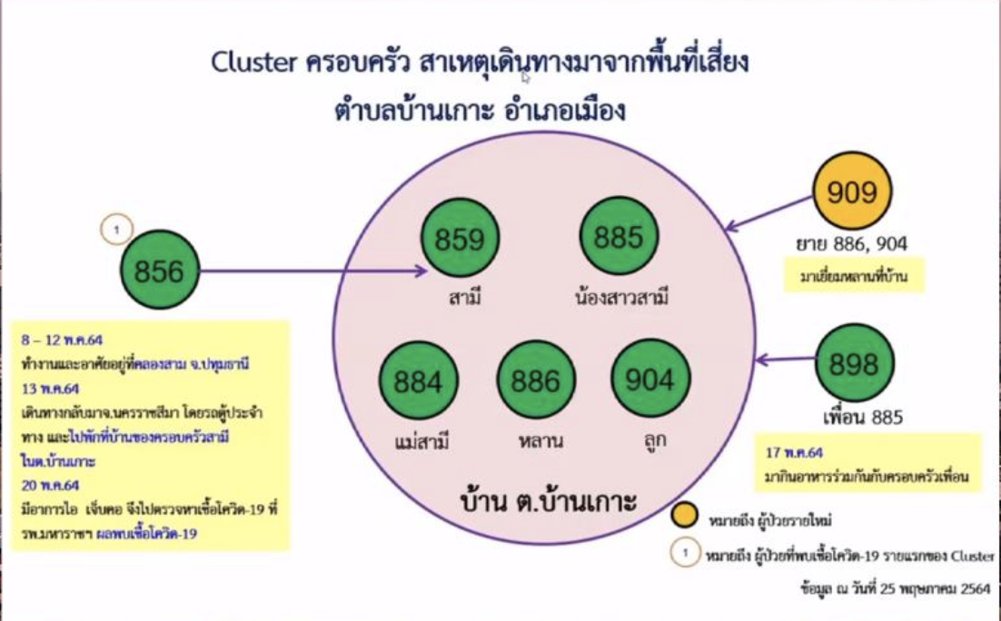 เมื่อวันที่ 25 พฤษภาคม 2564 ทางที่ประชุมคณะกรรมการโรคติดต่อจังหวัดนครราชสีมา แถลงพบคลัสเตอร์ใหม่ที่น่าเป็นห่วง คือ คลัสเตอร์ครอบครัวใน ต.บ้านเกาะ อ.เมือง อีกทั้งได้เปิดเผยไทม์ไลน์ของผู้ติดเชื้อรายที่ 856 ซึ่งมีความสำคัญกับพบคลัสเตอร์ใหม่ครั้งนี้