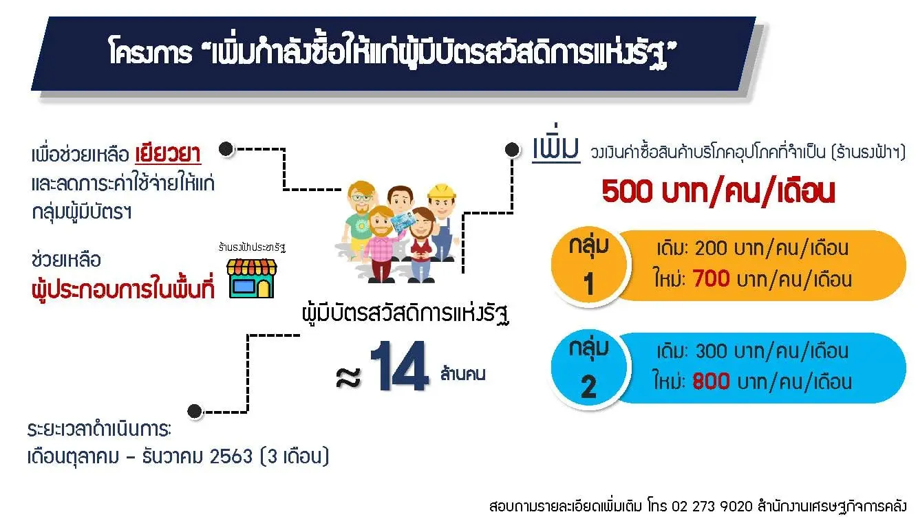 สำหรับผู้ประกอบการร้านค้าสามารถลงทะเบียนได้ตั้งแต่วันที่ 1 ตุลาคม 2563 เวลา 06.00 น. – 23.00 น. ผ่านเว็บไซต์ www.คนละครึ่ง.com หรือลงทะเบียนผ่านทางสาขาธนาคารกรุงไทย โดยธนาคารกรุงไทยจะช่วยติดตั้งแอปพลิเคชัน “ถุงเงิน” เพื่อใช้ในการรับชำระเงินจากการขายสินค้ากระทรวงการคลังคาดว่า โครงการเพิ่มกำลังซื้อให้แก่ผู้มีบัตรสวัสดิการแห่งรัฐและโครงการคนละครึ่งจะช่วยลดภาระค่าครองชีพให้แก่ประชาชนผู้มีรายได้น้อย และช่วยรักษากำลังซื้อในระบบเศรษฐกิจ จากการเติมเม็ดเงินเข้าสู่ระบบเศรษฐกิจ 81,000 ล้านบาท ครอบคลุมประชาชน 24 ล้านคน ซึ่งจะช่วยให้มีเงินหมุนเวียนในระบบเศรษฐกิจเพิ่มขึ้นในช่วงที่เหลือของปี 2563 และส่งแรงขับเคลื่อนต่อเนื่องไปยังปี 2564