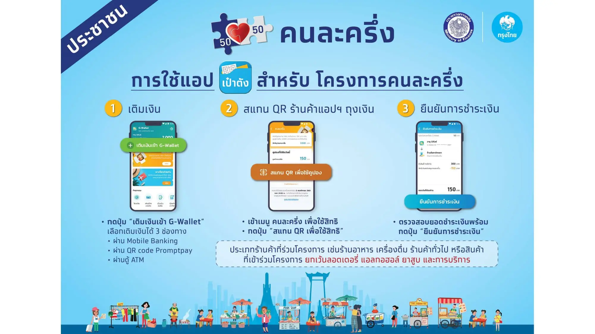 คนละครึ่ง วิธี ลงทะเบียน รับเงิน 3,000 บาท เริ่ม 16 ต.ค.นี้