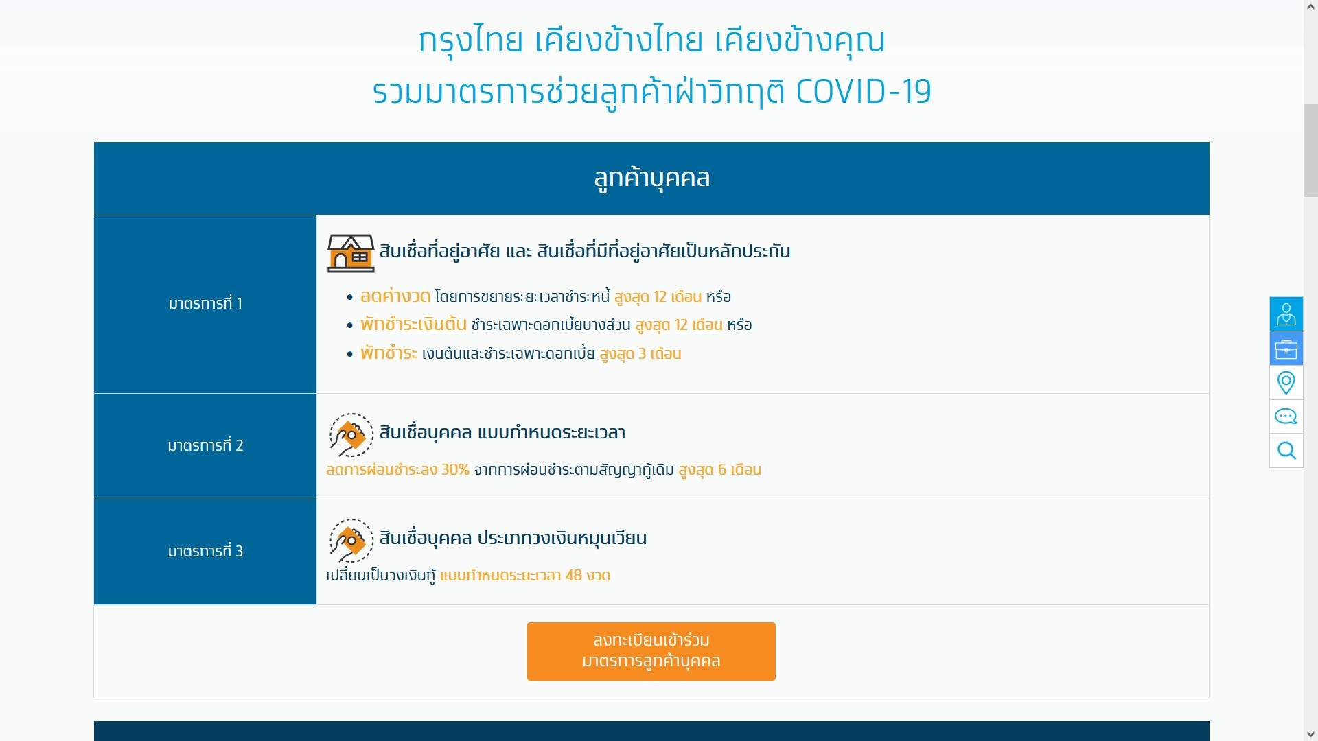 พักหนี้ — ธนาคารกรุงไทยได้ออกมาตรการช่วยเหลือลูกค้าที่ได้รับผลกระทบจากการแพร่ระบาดของโควิด19 มาอย่างต่อเนื่อง