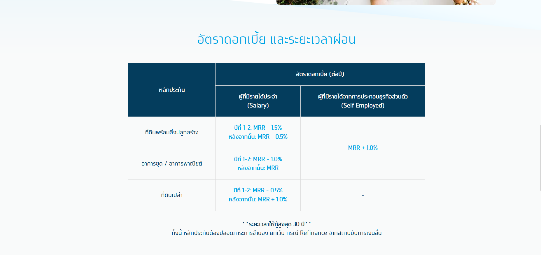 5.สามารถกู้ร่วมได้ โดยอายุผู้กู้หรือผู้กู้ร่วม เมื่อรวมกับระยะเวลาให้กู้ ต้องไม่เกิน 60 ปี