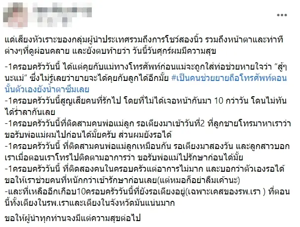 1 ครอบครัววันนี้สูญเสียคนที่รักไป โดยที่ไม่ได้เจอหน้ากันมา 10 กว่าวัน โดยไม่ทันได้ร่ำลากันเลย