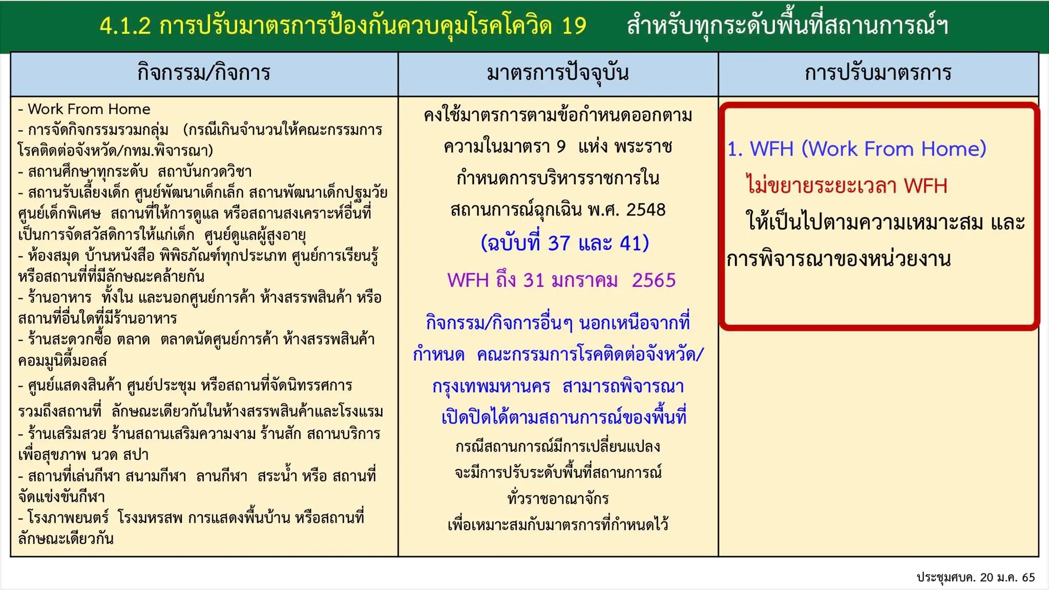ศูนย์บริหารสถานการณ์โควิด-19 ศบค. (ชุดใหญ่) เห็นชอบขยายการบังคับใช้ พ.ร.ก.ฉุกเฉินฯ ครั้งที่ 16 ออกไปอีก 2 เดือน ตั้งแต่วันที่ 1 กุมภาพันธ์ – 31 มีนาคม 2565 เพื่อป้องกันควบคุมโรค