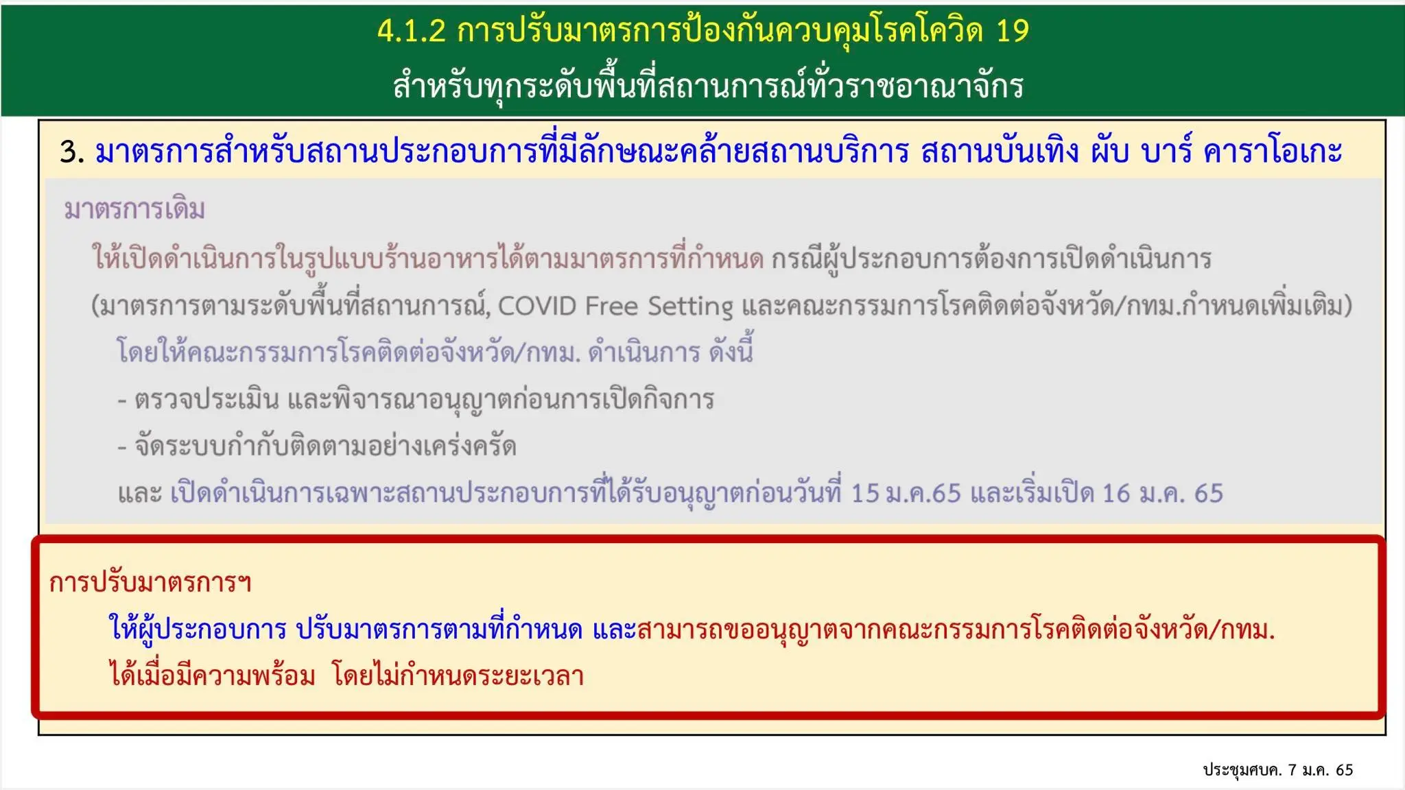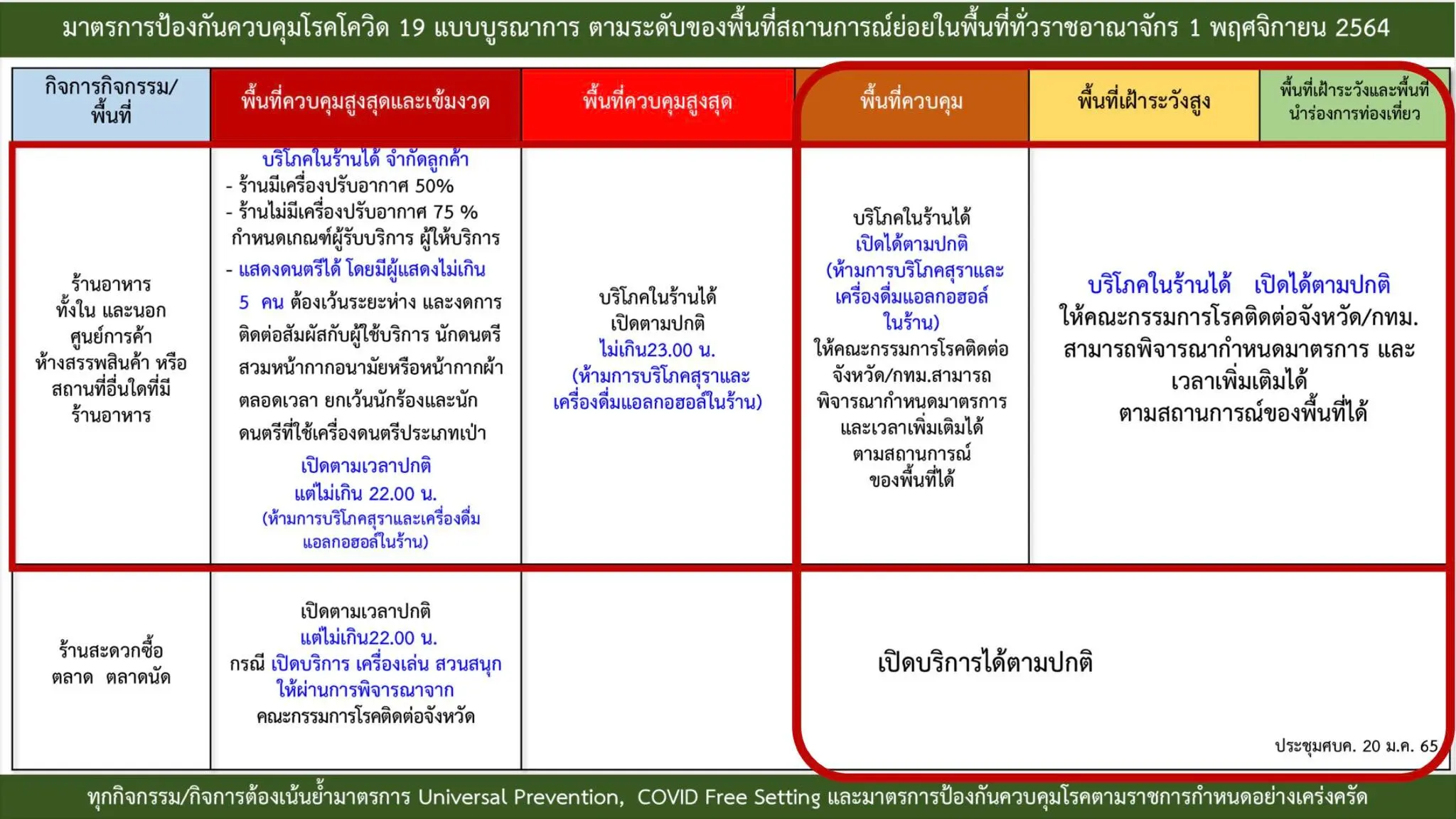 -การจำกัดประเภทร้านอาหารที่บริโภค เครื่องดื่มที่มีแอลกอฮอล์ได้ ต้องเป็นร้านอาหารที่ผ่าน SHA+ หรือ Thai Stop Covid 2 Plus เท่านั้น และตามมาตรการ Covid Free Setting