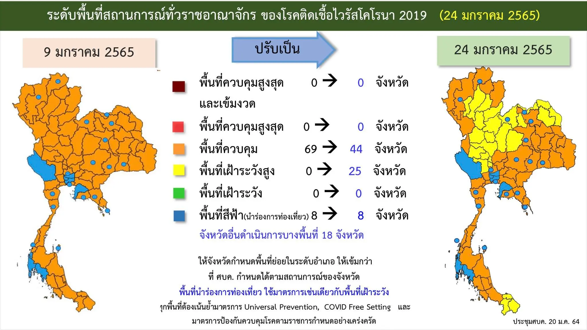 สีส้ม พื้นที่ควบคุม จากเดิม 69 จังหวัด เหลือ 44 จังหวัด
