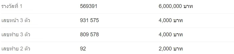 รางวัลเลขท้าย 2 ตัว คือ 92
