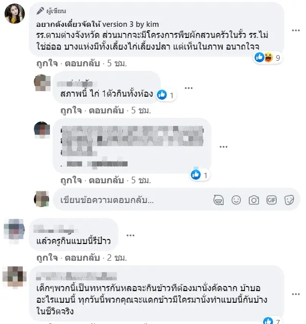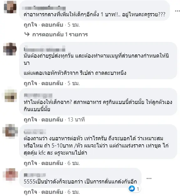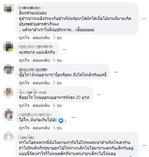 ด้านชาวเน็ตเองเมื่อได้เห็นสภาพของอาหารกลางวันที่เด็กๆ ได้ทานแล้วก็เข้ามาร่วมแสดงความคิดเห็นมากมาย อาทิ “ดูข้าวน่าจะแข็งร่วน ๆ กับข้าวก็ต้มร้อน ๆ ใส่ผักใส่เนื้อไปตามมีตามเกิดปรุงรสด้วยสารสำเร็จผง” “ต้องถามว่า งบอาหารต่อหัว เท่าไรครับ ถึงจะบอกได้ ว่าเหมาะสมหรือไหม ถ้า 5-10บาท /หัว ผมจะไม่ว่า แต่ถ้าแมร่งราคา เท่าชุด ไก่สุดคุ้ม kfc ละ ตรูจะตามไปด่า”