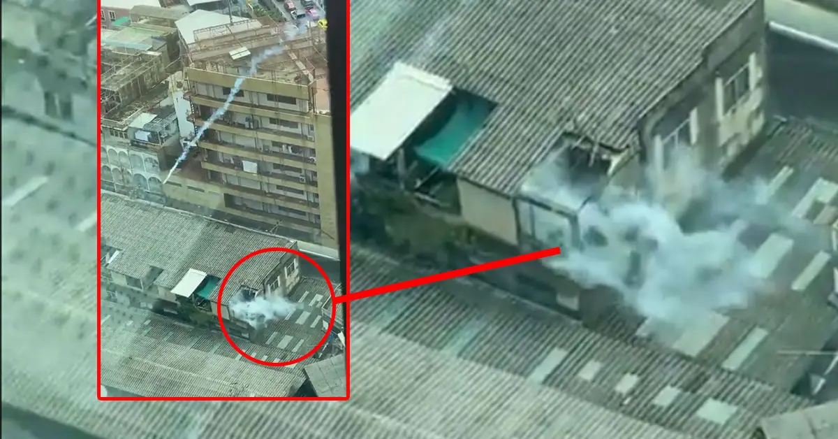 โดยผู้ใช้ทวิตเตอร์ JNlee.(Rest) แชร์คลิปภาพจากมุมสูงที่เผยให้เห็นภาพการยิงแก๊สน้ำตาของเจ้าหน้าที่ตำรวจ อีกทั้งแก๊สตาบางส่วนที่ถูกยิงออกมานั้น ได้ตกลงที่หลังคาบ้านเรือนของชาวบ้าน จนเกิดเป็นกลุ่มควันลุกท่วม ทางด้านชาวเน็ตต่างเข้ามาแสดงความคิดเห็นจากการกระทำครั้งนี้ของเจ้าหน้าที่ตำรวจ