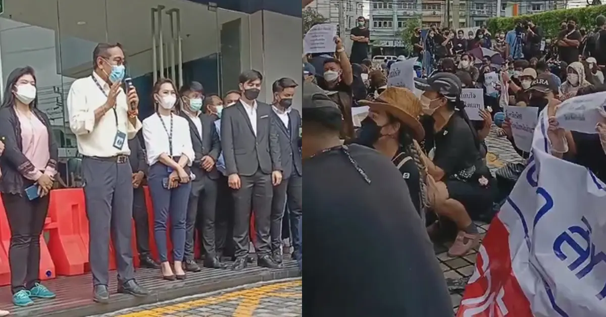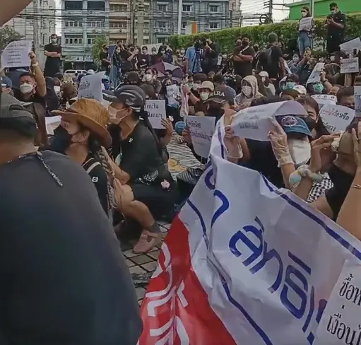 ขบวนลูกค้า ทิพยประกันภัย จำนวนมากพากันเดินทางรวมตัวประท้วงหน้าบริษัททิพยประกันภัย กรณีไม่รับเคลม ประกันโควิด