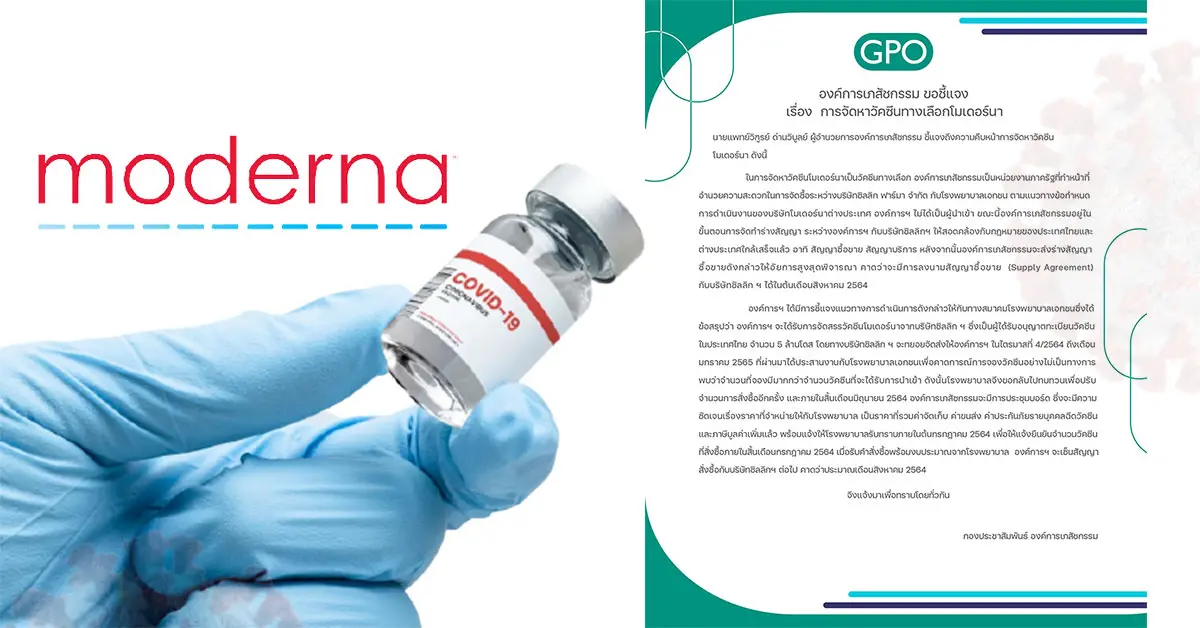 องค์การเภสัชกรรม เผยความคืบหน้า วัคซีน ทางเลือก “โมเดอร์นา” ถยอดจัดส่งในไตรมาสที่ 4 ของปีนี้ และรอเคาะราคาต่อโดสแบบจัดเจน เบ็ดเสร็จเดือนมิ.ย.นี้