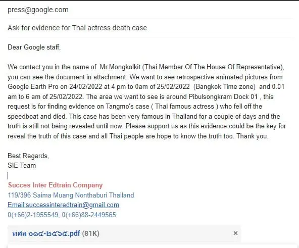เต้ มงคลกิตติ์ ส.ส. หัวหน้าพรรคไทยศรีวิไลย์ เปิดหนังสือขอภาพดาวเทียมจากเพื่อนองค์การนาซ่า Nasa คลายปมคดี แตงโม