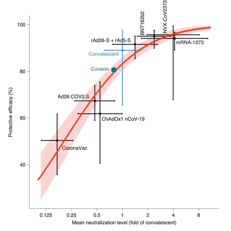 จากการศึกษาครั้งล่าสุดของคุณหมอ พบว่า ประสิทธิภาพของวัคซีนไปตามกับปริมาณของ neutralizing antibody ที่สร้างได้ (ดังรูป)