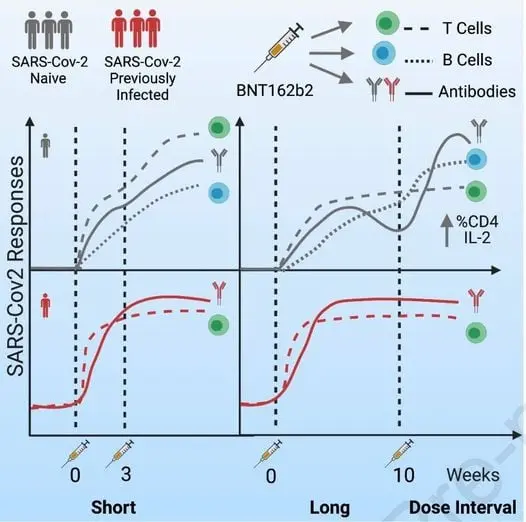 งานวิจัยชิ้นนี้ทีมวิจัยพบว่า การยืดระยะเวลาเข็มสองของ mRNA (Pfizer) จาก 3 สัปดาห์ไปเป็น 10 สัปดาห์ สามารถกระตุ้นภูมิคุ้มกันโดยเฉพาะแอนติบอดีต่อไวรัสที่สูงกว่าและอยู่ได้ยาวนานกว่า ข้อมูลดูตรงไปตรงมาสอดคล้องกับข้อมูลที่แคนาดาแสดงออกมาว่าการชะลอเข็มสองทำให้ประสิทธิภาพของวัคซีนดีขึ้นกว่าที่พบในประเทศที่ใช้วัคซีนแบบฉีดเข็มสองไว แต่ด้วยเหตุผลของการระบาดที่มีมาก การชะลอเข็มสองเป็นความเสี่ยงที่ภูมิคุ้มกันจากเข็มแรกที่มีไม่มากจะทำให้ติดเชื้อไวรัสซะก่อน ทำให้หลายๆประเทศ ไม่ได้เลือกใช้วิธีนี้