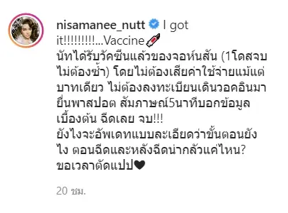 นัท นิสามณี เลิศวรพงศ์ หรือที่ใครๆรู้จักกันในชื่อ นัทนิสา สะบัดแปรง ล่าสุดปล่อยคลิปเด็ด โชว์ฉีดวัคซีนฟรี ที่สหรัฐอเมริกา โดยไม่เสียตังสักบาท