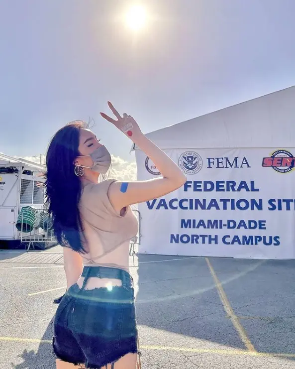 หลังจากนั้นเธอก็ได้โพสต์วิดีโอเล่าถึงการเดินทางมาฉีดซึ่งเธอได้ระบุว่า หลังจากที่ลงจากเครื่อง เจ้าหน้าที่ได้ถามกับเธอว่ามาทำอะไรที่นี่ เธอจึงได้ตอบไปว่าเธอมาฉีดวัคซีน เจ้าหน้าที่จึงได้แนะนำสถานที่ฉีดไปและยังได้บอกอีกว่าสามารถเดินเข้าไปฉีดได้เลยโดยที่ไม่ต้องลงทะเบียนและไม่ต้องเสียค่าใช้จ่าย