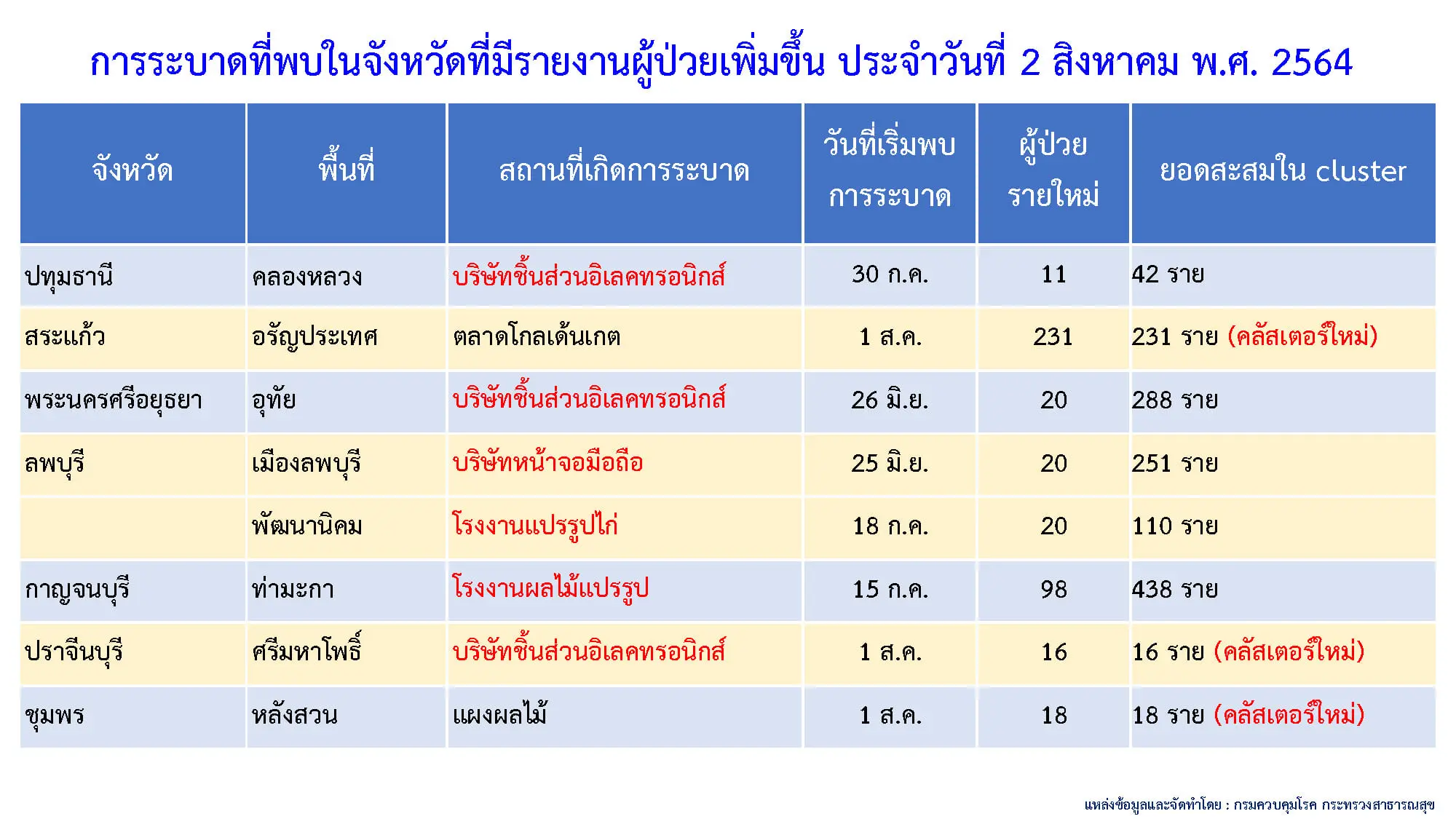 คลัสเตอร์ใหม่ 2 สิงหาคม 2564