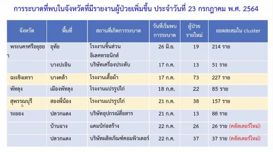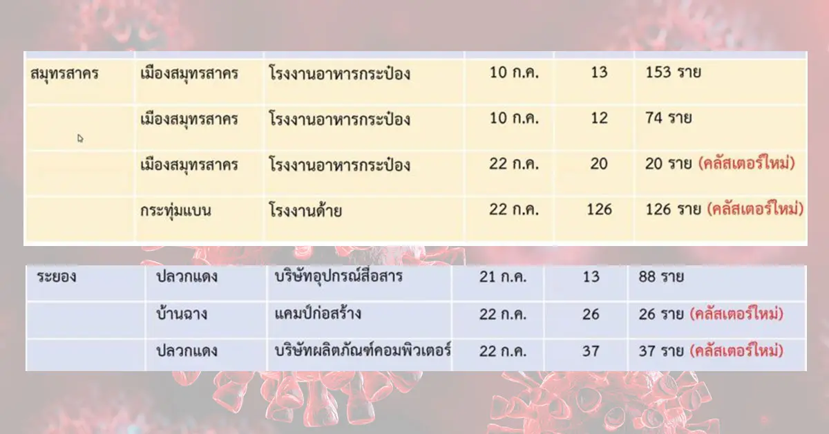 - จังหวัดระยอง ตรวจพบ 2 คลัสเตอร์ รวม 63 ราย