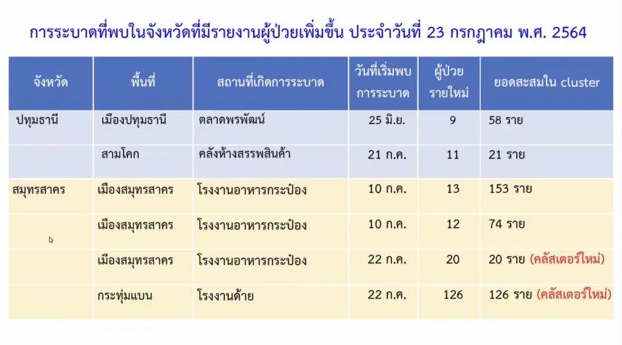 โผล่อีก 4 แห่ง คลัสเตอร์ใหม่ วันนี้ – จับตา สมุทรสาคร พบเพิ่ม 2 แห่ง ติดเชื้อ 146 ราย ส่วนกทม.คงตำแหน่งที่1 ติดเชื้อมากที่สุดในประเทศ