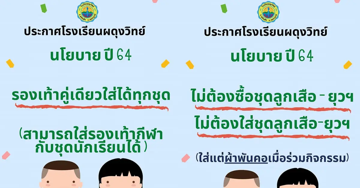 ไอเดียเลิศ! โรงเรียนผดุงวิทย์ ออกนโยบายใหม่ รองเท้าคู่เดียวใส่ได้ทุกชุด แถมยังไม่ต้องใส่ชุดลูกเสือ-ยุวฯ มาเรียนแล้ว ผู้ปกครองแห่ชื่นชมเพียบ