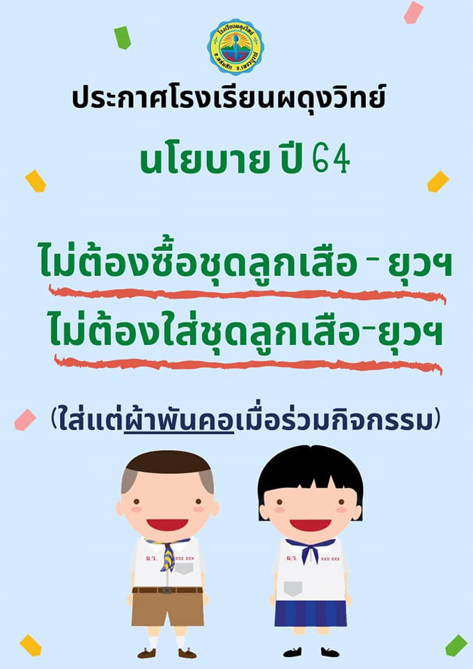 นอกจากเรื่องรองเท้า ทางโรงเรียนยังประกาศอีกว่าปีนี้ นักเรียน “ไม่ต้องซื้อชุดลูกเสือ ยุวกาชาด ไม่ต้องใส่ชุดลูกเสือ ยุวกาชาด ใส่แต่ผ้าพันคอเมื่อร่วมกิจกรรม เท่านั้น” อีกด้วย