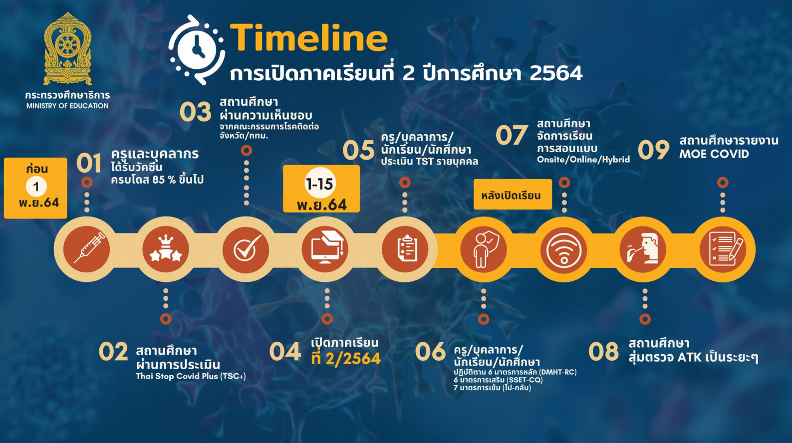 ไทม์ไลน์เปิดภาคเรียนที่ 2 ปีการศึกษา 2564