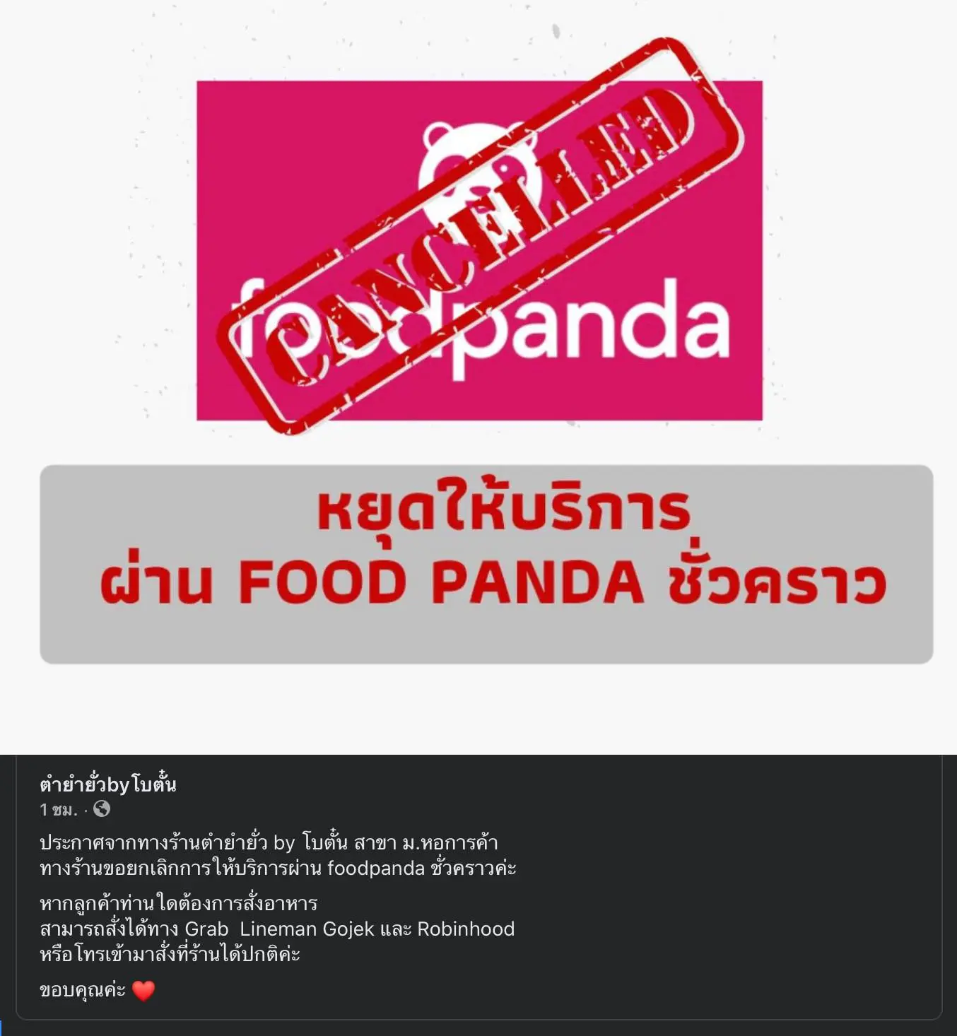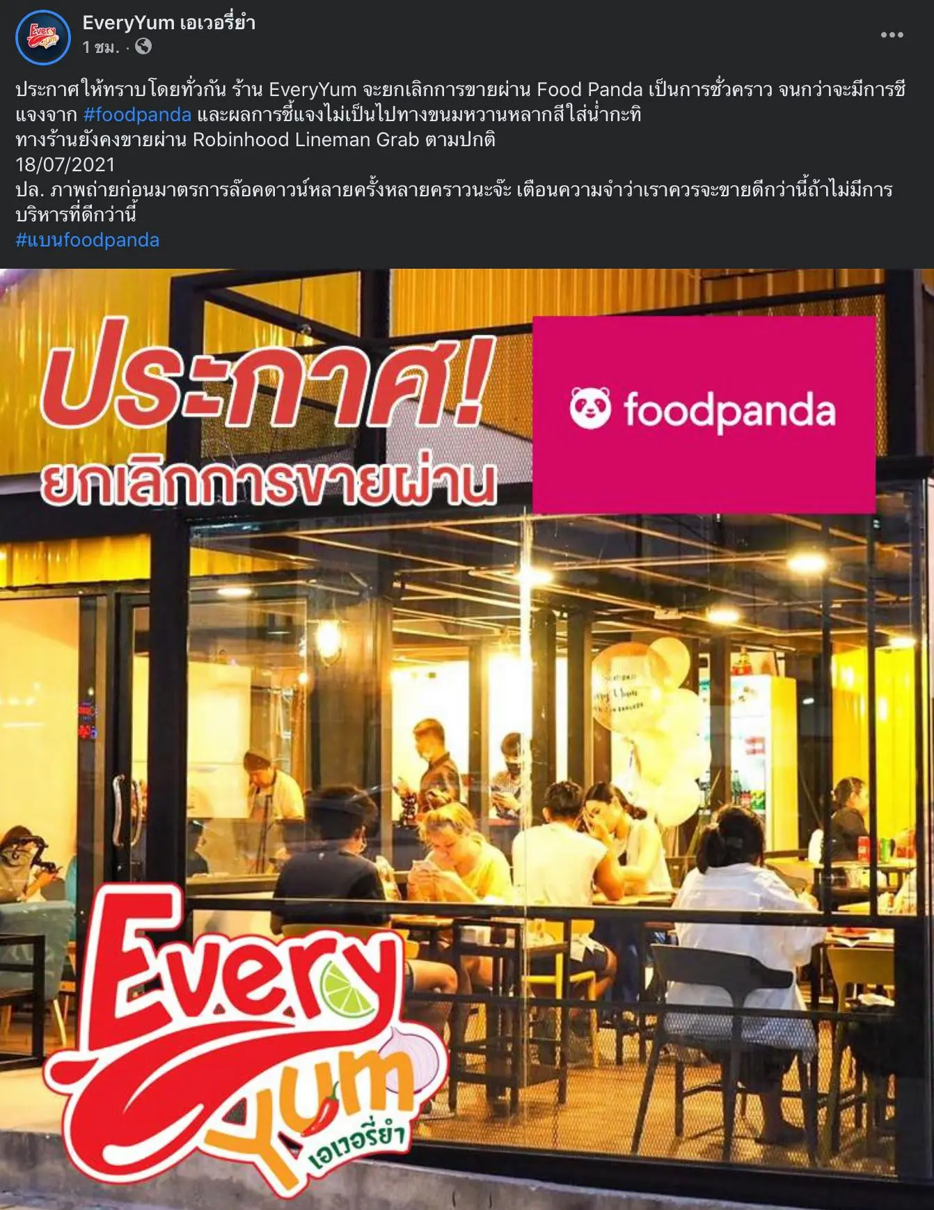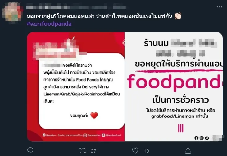 ร้านค้า-ผู้ใช้งาน แห่ติดแฮชแท็ก แบนfoodpanda หลังประกาศไล่ไรเดอร์ร่วมชุมนุม พร้อมตีตราว่าเป็นคนร้าย ทั้งที่ยังไม่สอบสวน