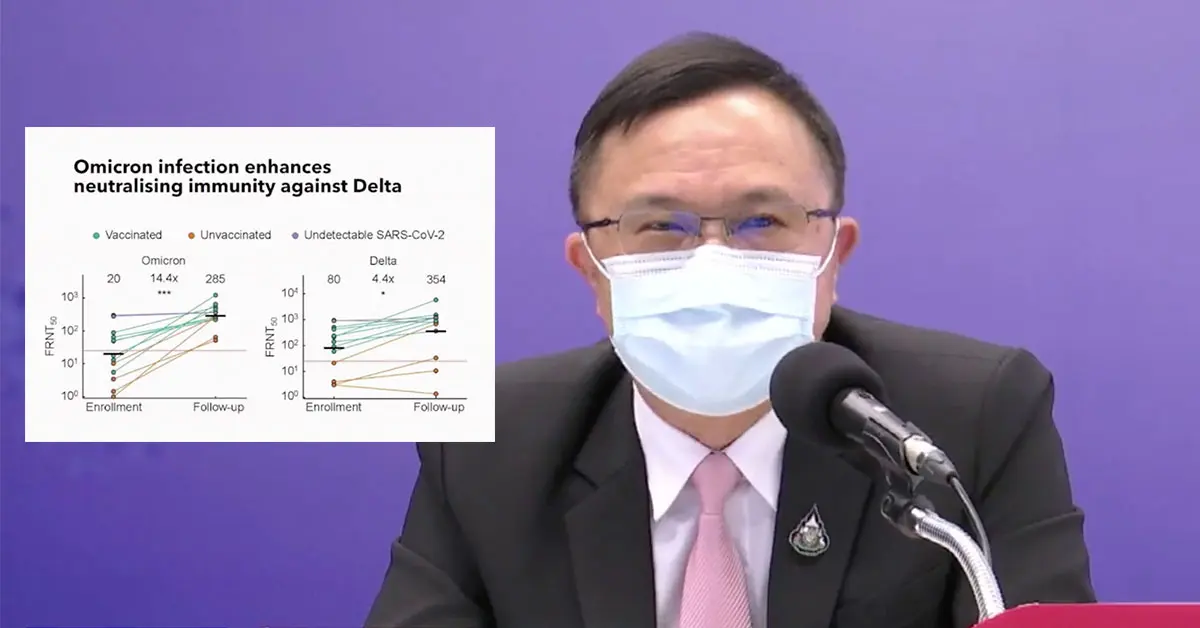 ข้อมูลน่าสนใจ! จากผลการศึกษาจากต่างประเทศ กรมวิทย์.เผยผู้ติดเชื้อโควิด โอมิครอน ภูมิคุ้มกันขึ้นถึง 14 เท่า และมีแนวโน้มต้านเดลต้าได้ และเชื้อโอมิครอนได้