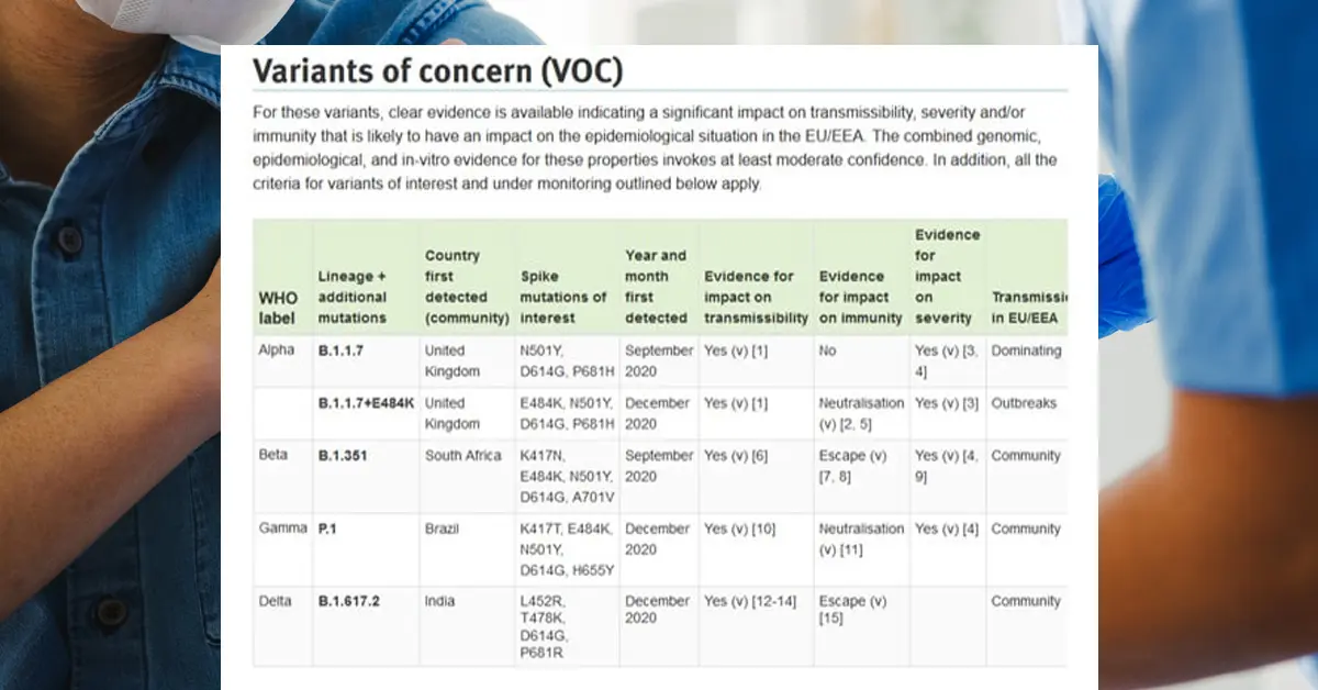 คุณหมอได้กล่าวต่อว่า จากการศึกษาข้อมูลจาก European Centre of Disease Prevention and Control (ECDC) เกี่ยวกับไวรัสกลายพันธุ์ อัพเดตล่าสุดเมื่อ 3 มิถุนายน 2564