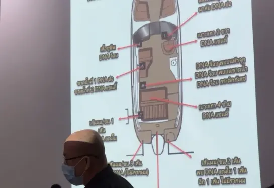 พร้อมกันนี้ ประธานชมรมช่วยเหลือเหยื่ออาชญากรรม ยังตั้งข้อสงสัยในหลักฐานทางนิติวิทยาศาสตร์ของเจ้าหน้าที่ตำรวจ ที่ไม่มีรอยนิ้วมือการจับขาของ แซน ที่อ้างว่าได้มีการจับขาแตงโม บนเรือก่อนที่แตงโมจะตกเรือแต่อย่างใด พร้อมกับได้นำภาพถ่ายบาดแผลกรณีมีบุคคลขาถูกใบพัดเรือมาแสดง ซึ่งต่างจากภาพที่ตำรวจภูธรภาค 1 นำมาแสดงแถลงต่อสื่อมวลชน โดย นายอัจฉริยะ เชื่อว่าบาดแผลที่ ต้นขาแตงโม ดาราสาว ไม่ได้เกิดจากใบพัดเรือแต่เกิดจากถูกของมีคม