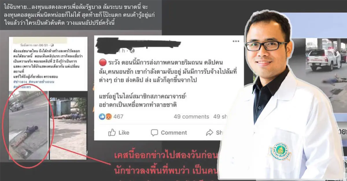 มีคนแชร์กันว่ามีทีมจัดฉากแกล้งตายตามถนน (ตามรูปจาก drama addict ข้างล่าง)