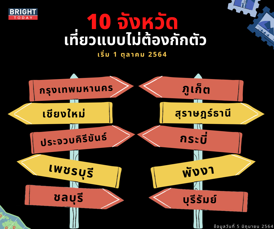 เปิดรายชื่อ 10 จังหวัด พร้อมเที่ยวแบบไม่ต้องกักตัว มั่นใจคนในพื้นที่จังหวัด ได้รับวัคซีนกว่า 70% นำล่องก่อน 10 จังหวัด เริ่ม 1 ต.ค. นี้