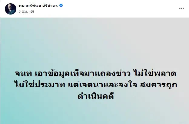 “เจ้าหน้าที่ เอาข้อมูลเท็จมาแถลงข่าว ไม่ใช่พลาด ไม่ใช่ประมาท แต่เจตนาและจงใจ สมควรถูกดำเนินคดี”