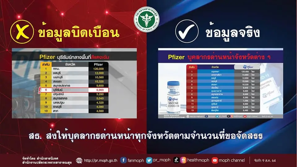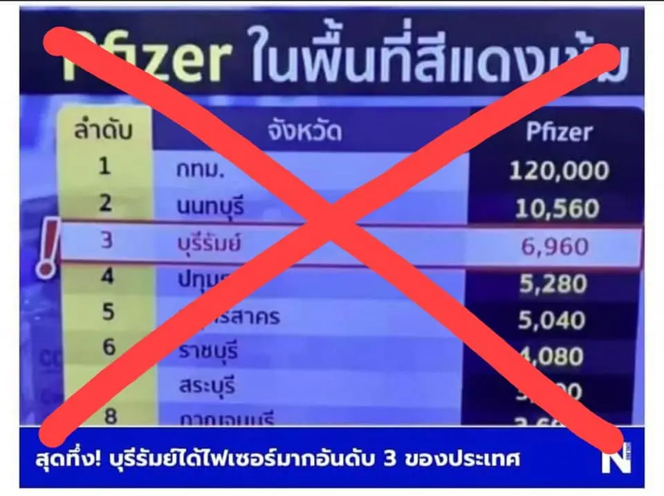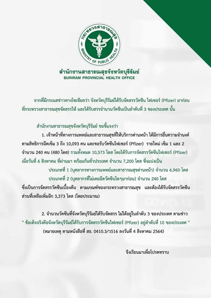 “ข้อเท็จจริงคือจังหวัดบุรีรัมย์ได้รับการจัดสรรวัคซีนไฟเซอร์ (Pfizer) อยู่ลำดับที่ 10 ของประเทศ”