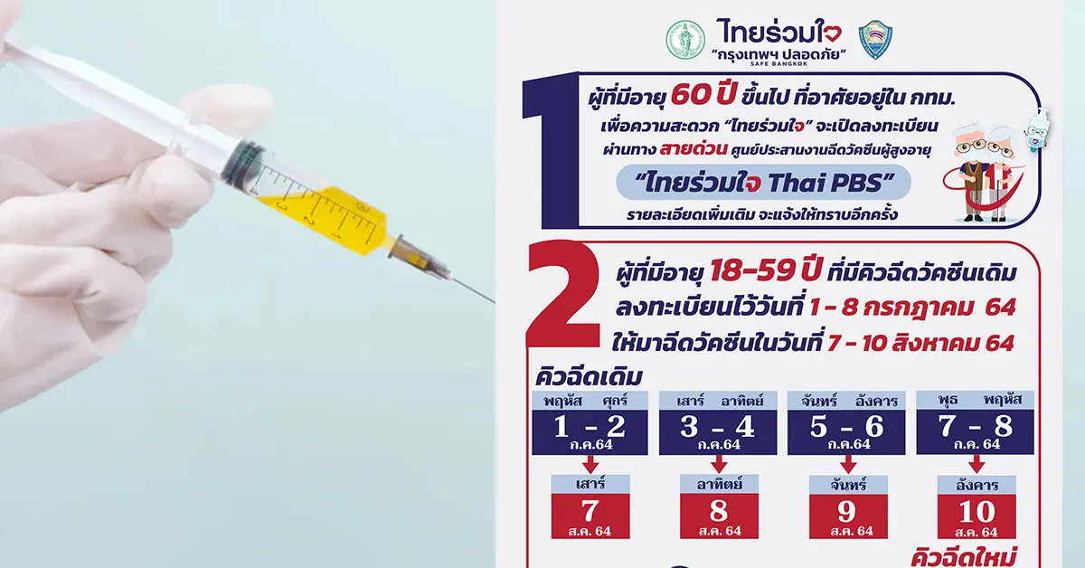 เมื่อวันที่ 4 สิงหาคม 2564 ทางเพจเฟซบุ๊ก ไทยร่วมใจ กรุงเทพฯ ปลอดภัย Safe Bangkok ประกาศคิวฉีดวัคซีนใหม่ สำหรับกลุ่มประชาชนทั่วไป อายุ 18-59 ปี ที่ลงทะเบียนจองคิววัคซีนโควิดในวันที่ 1 – 8 กรกฎาคม 2564 ซึ่งคิวใหม่คือวันที่ 7 – 10 สิงหาคม 2564 และระบบจะแสดงผลนัดใหม่ ตั้งแต่วันที่ 5 ส.ค. เวลา 12.00 น. เป็นต้นไป