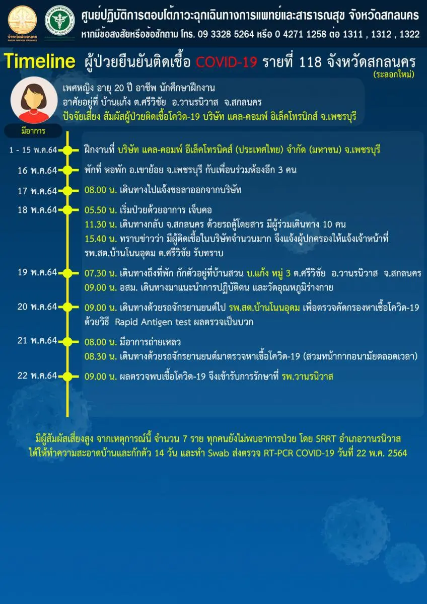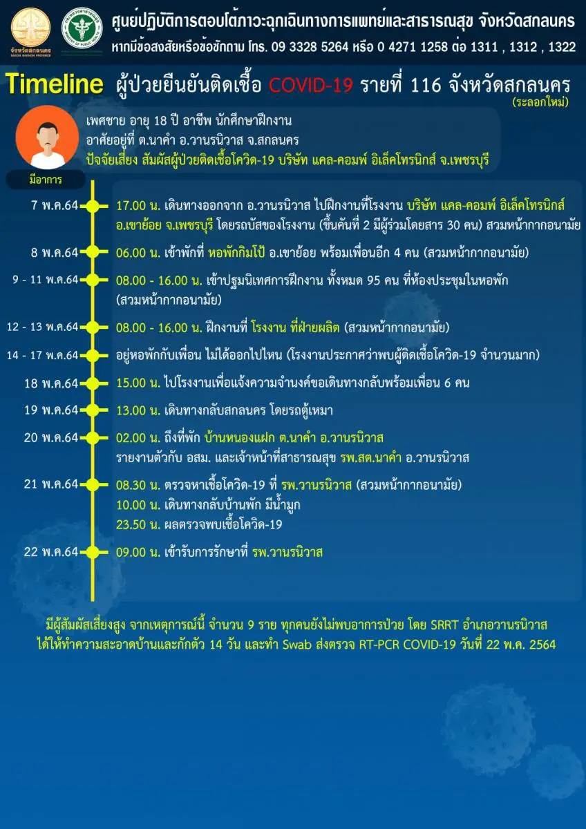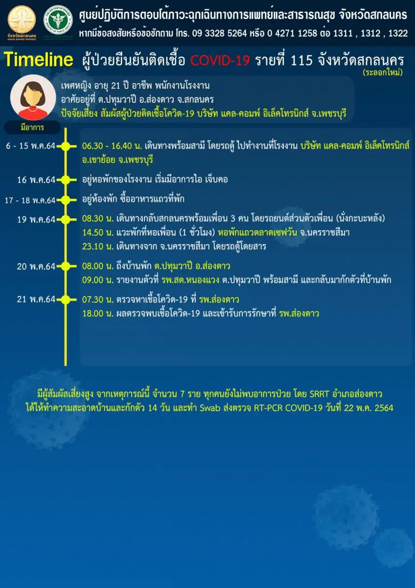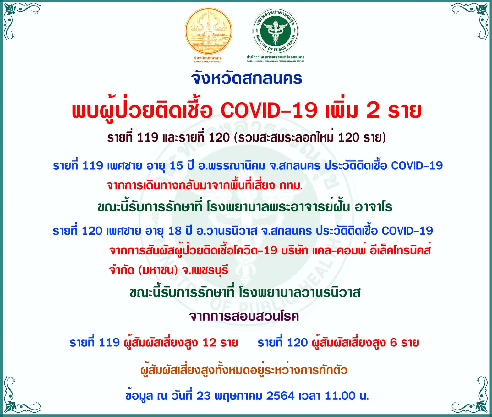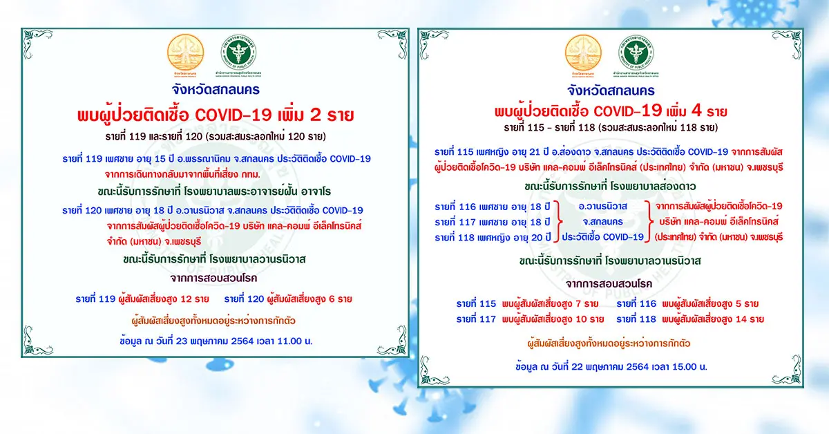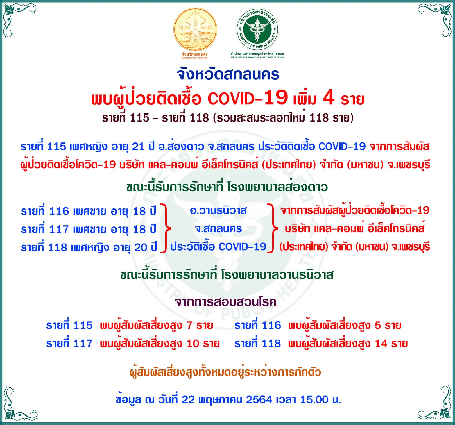 ติดเชื้อข้ามจังหวัด – จากรายงาน พบผู้ติดเชื้อโควิด-19 ที่จังหวัด สกลนคร 5 ราย เกี่ยวเนื่องกับ คลัสเตอร์โรงงานแคลคอมพ์ เพชรบุรี