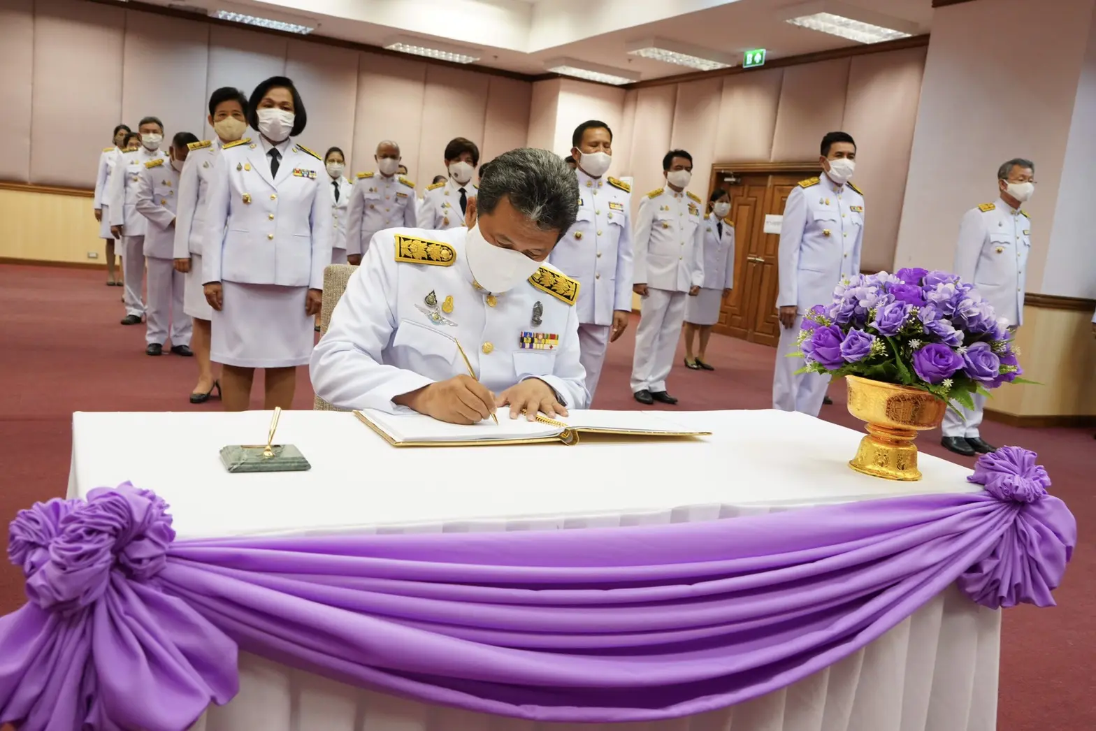วันอังคารที่ 2 มิถุนายน 2563 นายสุทธิพงษ์ จุลเจริญ อธิบดี กรมการพัฒนาชุมชน พร้อมด้วยผู้บริหาร ข้าราชการ และพนักงานกรมการพัฒนาชุมชน ร่วมพิธีลงนามถวายพระพรชัยมงคลสมเด็จพระนางเจ้าฯ พระบรมราชินี เปิดกรวยถวายราชสักการะ และกล่าวคำถวายพระพรชัยมงคลเบื้องหน้าพระฉายาลักษณ์สมเด็จพระนางเจ้าสุทิดา พัชรสุธาพิมลลักษณ พระบรมราชินี เนื่องในโอกาสวันเฉลิมพระชนมพรรษาสมเด็จพระนางเจ้าฯ พระบรมราชินี ต่อจากนั้น ประธานในพิธีฯ ข้าราชการและพนักงานในสังกัดได้ร่วมลงนามถวายพระพร เพื่อเป็นการแสดงออกถึงความจงรักภักดีและสำนึกในพระมหากรุณาธิคุณ ณ ห้องสัมมนา 3003 กรมการพัฒนาชุมชน ศูนย์ราชการเฉลิมพระเกียรติฯ ถนนแจ้งวัฒนะ