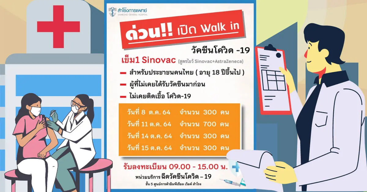 ไม่ต้องรอ ได้ฉีดเลย ด่วน!! โรงพยาบาลสำโรงการแพทย์ เปิด WALK IN ฉีดวัคซีนสูตรไขว้ (ซิโนแวค+แอสตร้าเซนเนก้า) จำกัดจำนวนต่อวัน เริ่มวันนี้!! (8ต.ค64)