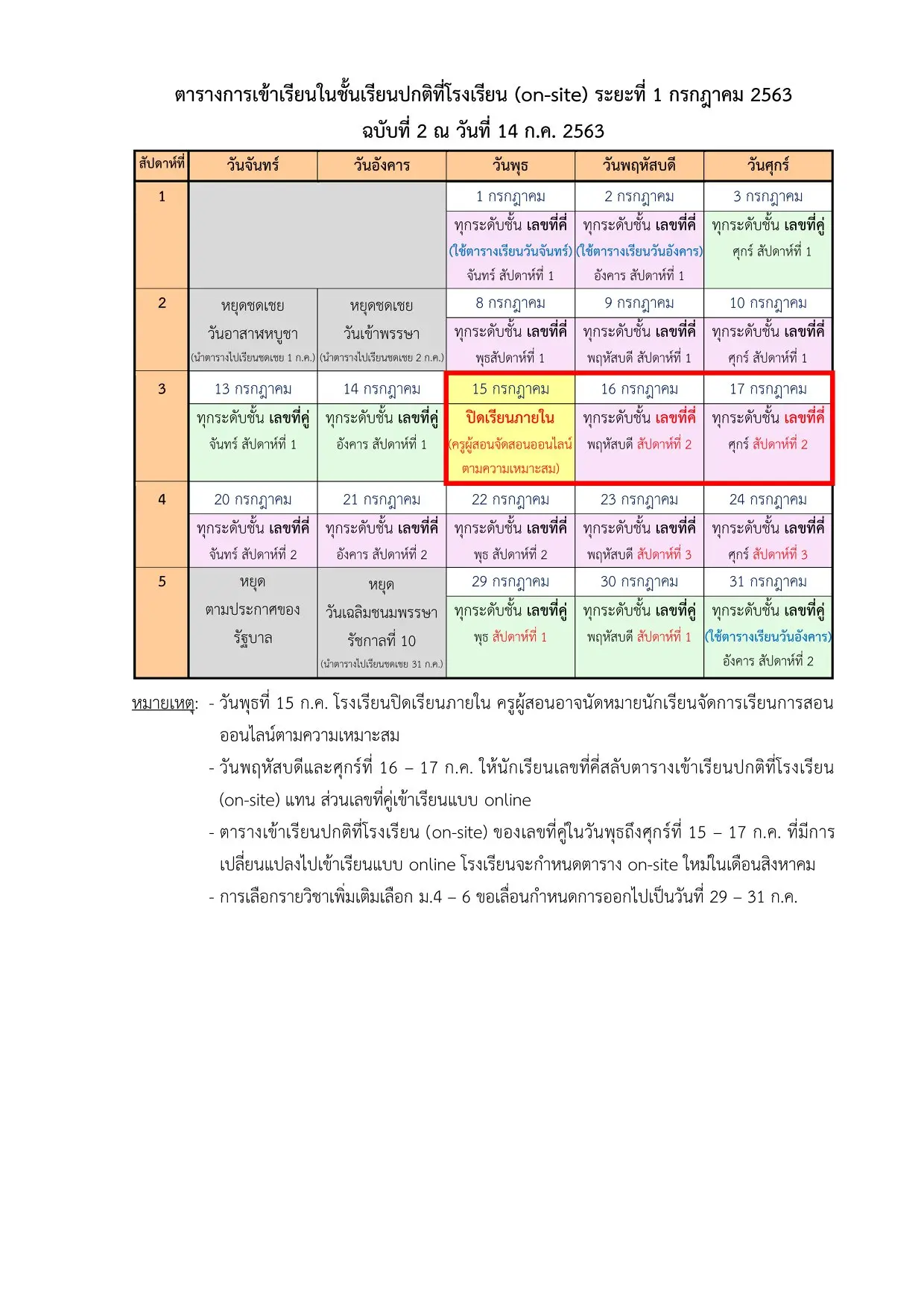 อีกทั้งเพจเฟซบุ๊ก งานประชาสัมพันธ์โรงเรียนสามเสนวิทยาลัย โพสต์ประกาศหนังสือดังกล่าว พร้อมทั้งตารางการเข้าเรียนในชั้นเรียนปกติที่โรงเรียน (on-site) และแจ้งการเลือกรายวิชาเพิ่มเติมเลือก ม.4 – 6 ขอเลื่อนกำหนดการออกไปเป็นวันที่ 29 – 31 ก.ค. 2563