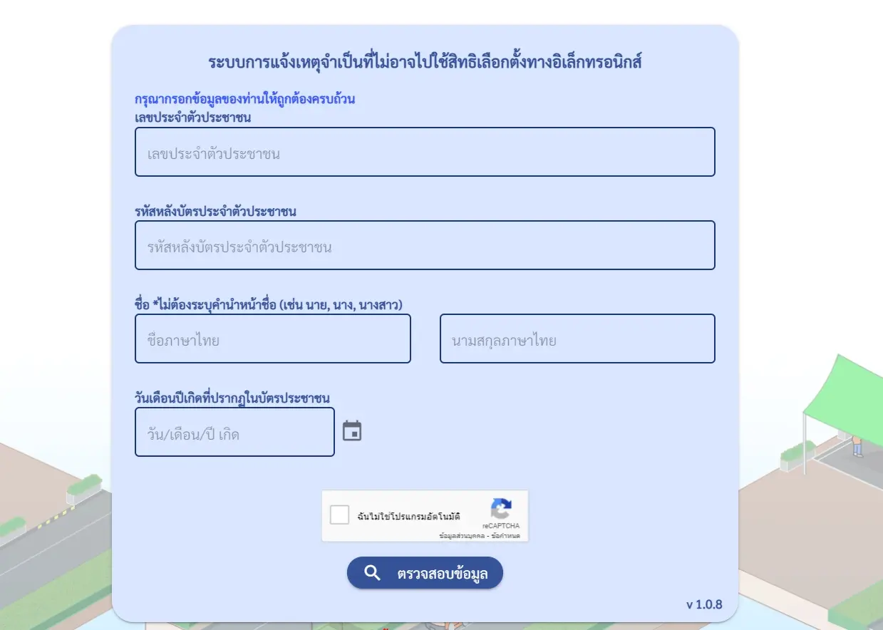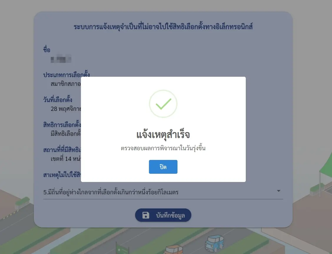 2.กรอกรายละเอียดในแบบ “แจ้งเหตุที่ไม่อาจไปใช้สิทธิเลือกตั้ง” ให้ถูกต้องครบถ้วน ได้แก่