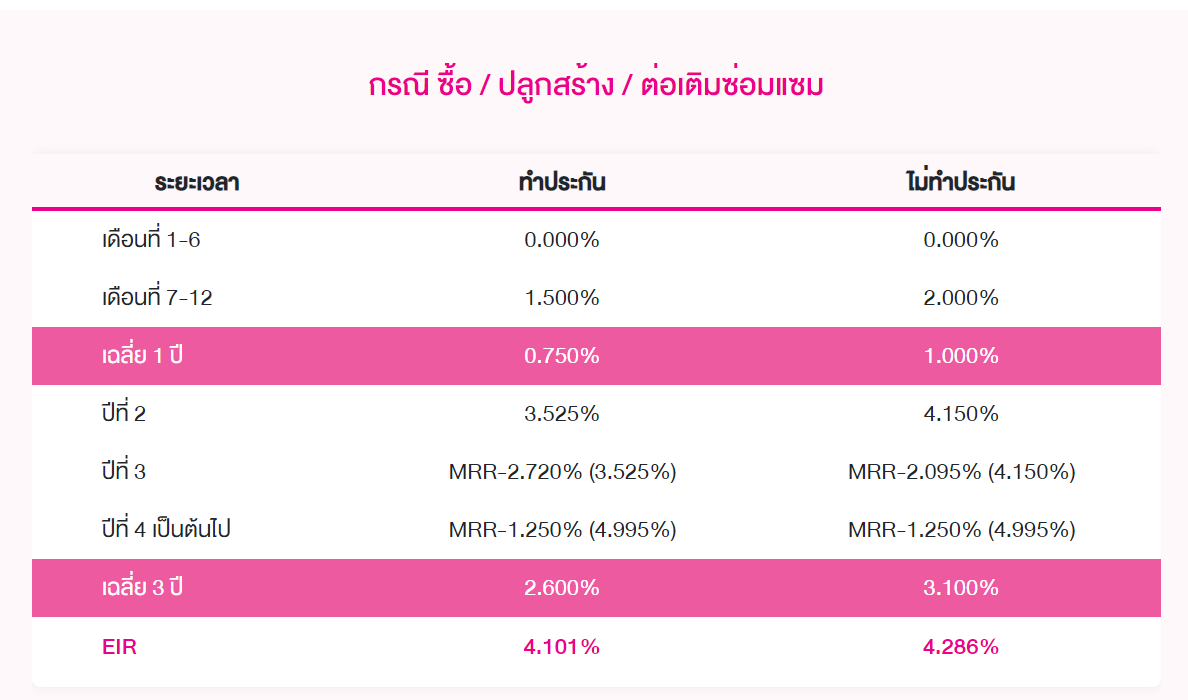 หมายเหตุ : ทั้งนี้ ในกรณีที่กู้ร่วมกับบุคคลอื่นให้นับระยะเวลาชำระเงินกู้ตามอายุของผู้กู้ที่มีอายุน้อยที่สุดเพียงคนเดียว