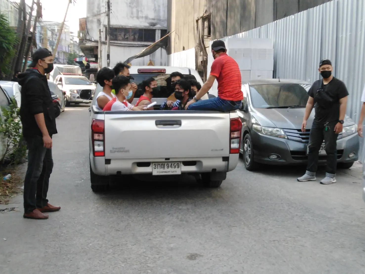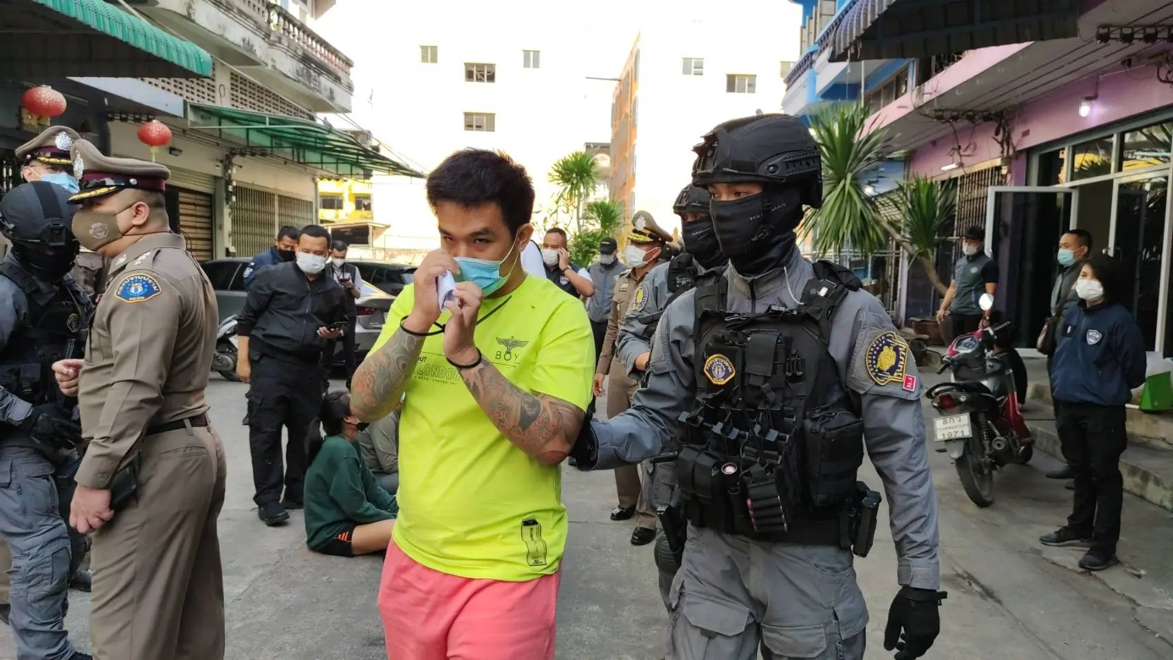 ส่วนผู้ต้องหารายอื่นๆ ทั้งลูกน้องคนสนิทที่ถูกจับกุมได้พร้อมอาวุธปืน และแรงงานต่างด้าวทั้งชายและหญิงประมาณเกือบ 20 คน ที่พักอยู่ในบ้าน ถูกแยกคุมตัวขึ้นรถตำรวจอีก 3 คัน คาดว่าน่าจะพาตัวไปสอบปากคำที่ สน.ภาษีเจริญ ก่อนสรุปผลการสอบสวนแจ้งข้อหาดำเนินคดีให้ ผบ.ตร. เพื่อแถลงรายละเอียดให้ประชาชนทราบข้อเท็จจริงพร้อมกันในเวลา 10.30 น. ต่อไป