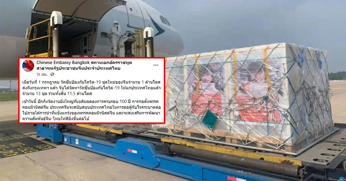 ถึงไทยแล้ว! วัคซีน “ซิโนแวค” เสริมทัพอีก 1 ล้านโดส ส่งตรงจากจีน รวมวัคซีนซิโนแวคจากประเทศจีนทั้งหมดก่อนหน้านี้ 11.5 ล้านโดส