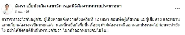 จากประเด็นดังกล่าว ที่ได้รับความสนใจจากประชาชนมากมาย โดยทนายตั้ม ได้โพสต์ผ่านเฟซบุ๊ก ษิทรา เบี้ยบังเกิด เลขาธิการมูลนิธิทีมงานทนายประชาชนฯ ระบุว่า