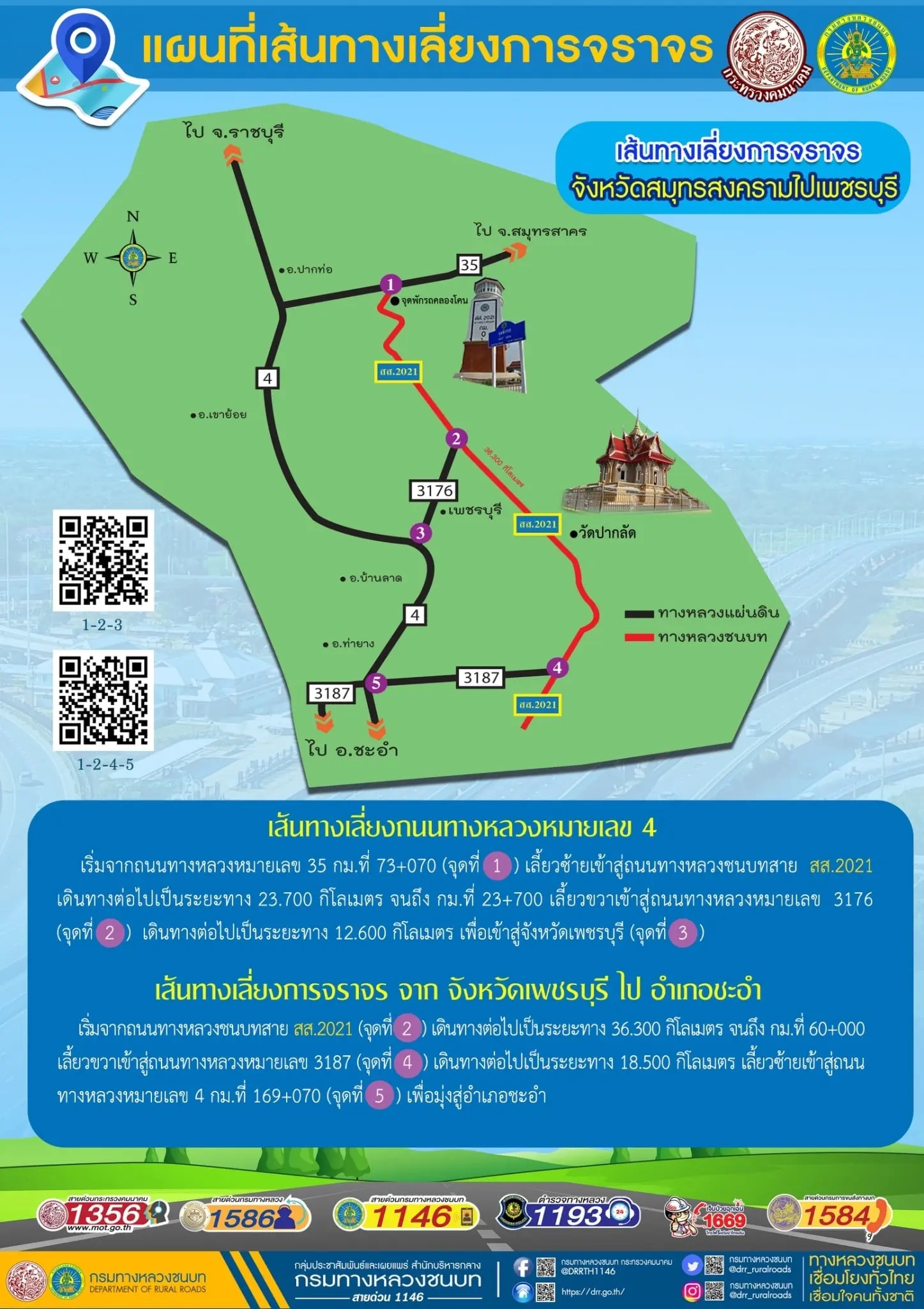 ทั้งนี้ ในช่วงเทศกาลสงกรานต์ 2564 ประชาชนสามารถติดต่อสอบถามเส้นทางเลี่ยงของกรมทางหลวงชนบทได้ที่สายด่วน 1146 หรือติดตามได้ที่ www.drr.go.th, Facebook กรมทางหลวงชนบท กระทรวงคมนาคม และ Twitter กรมทางหลวงชนบท