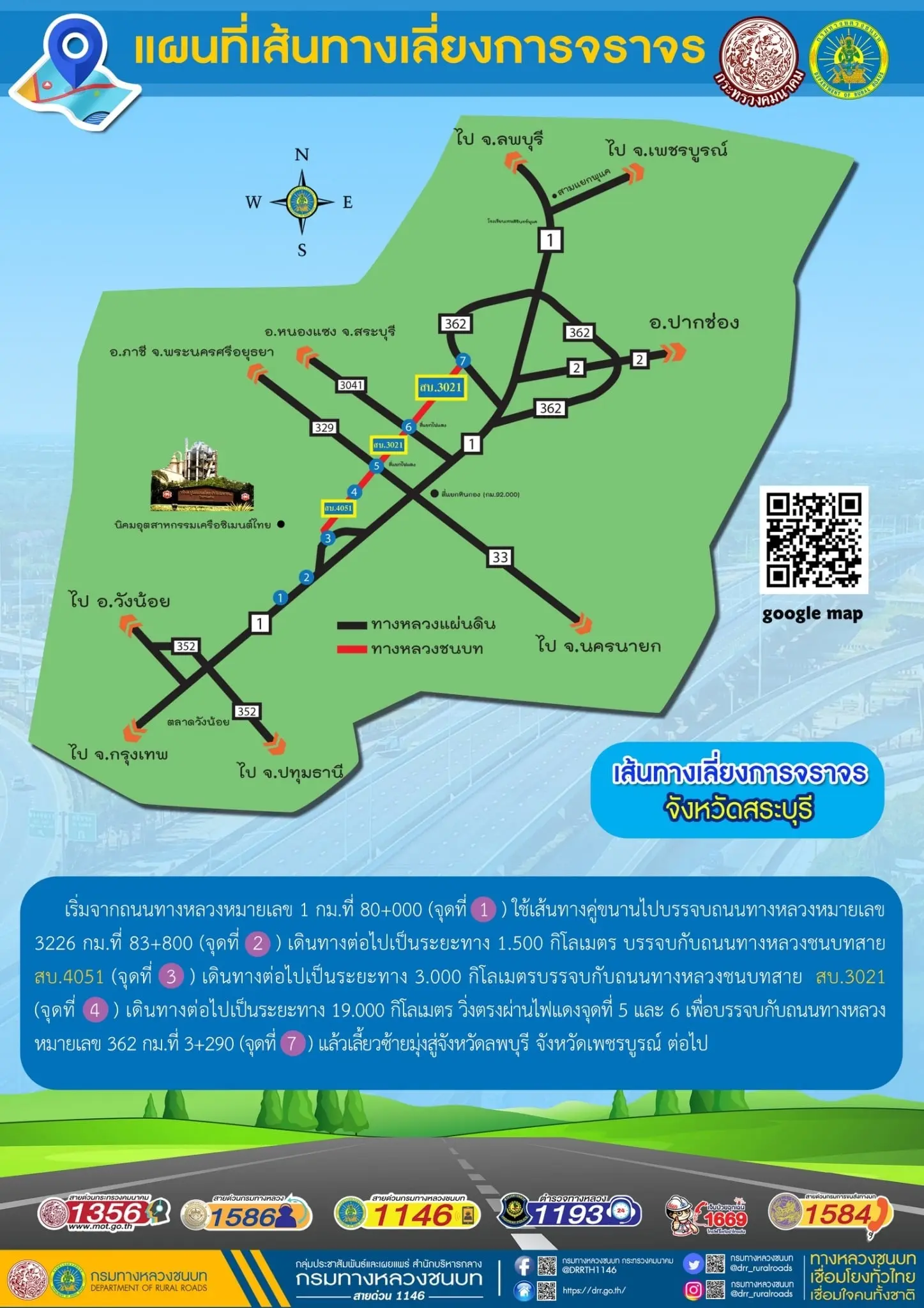 3. เส้นทางเลี่ยงการจราจรจังหวัดสระบุรี เส้นทางเลี่ยงถนนทางหลวงแผ่นดินหมายเลข 1
