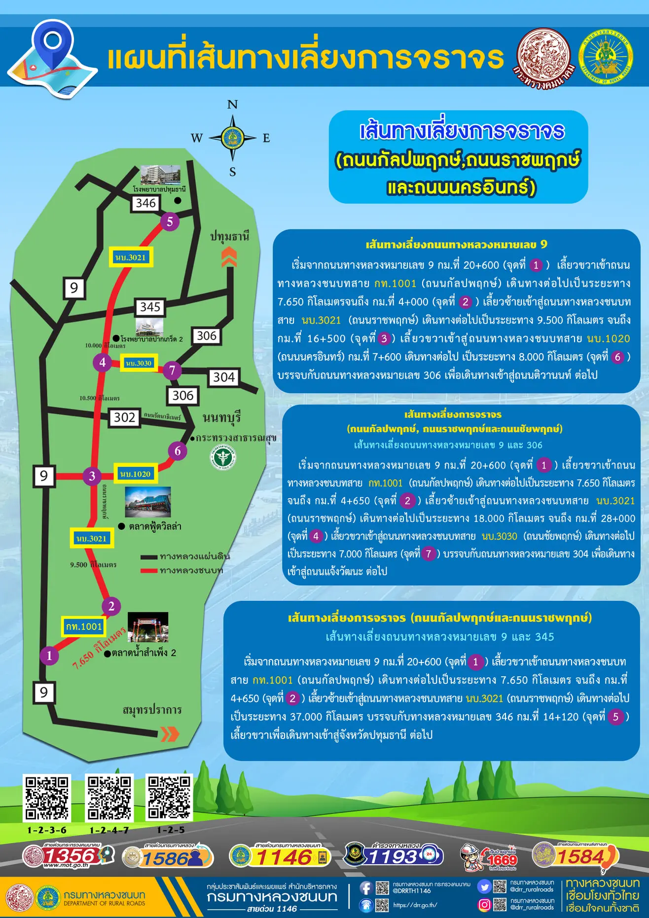 1. เส้นทางเลี่ยงการจราจร (ถนนกัลปพฤกษ์ ถนนราชพฤกษ์ และถนนนครอินทร์) เส้นทางเลี่ยงถนนทางหลวงแผ่นดินหมายเลข 9
