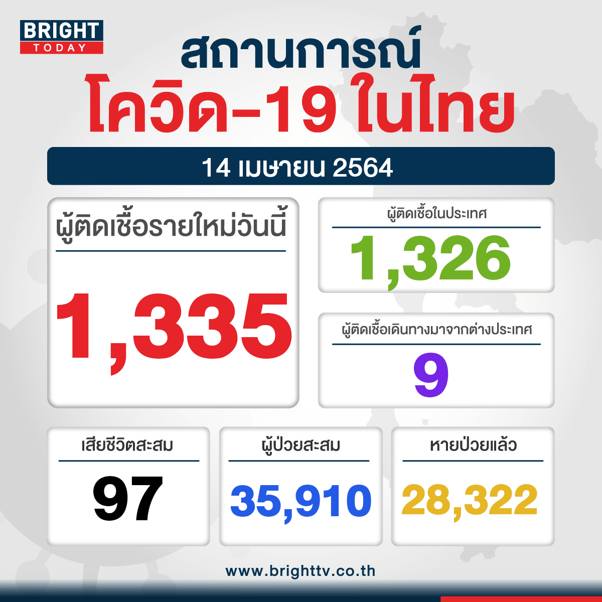 รายละเอียดผู้ป่วย โควิด-19 รายใหม่ วันที่ 14 เมษายน 2564 จำนวน 1,335 ราย มีดังนี้