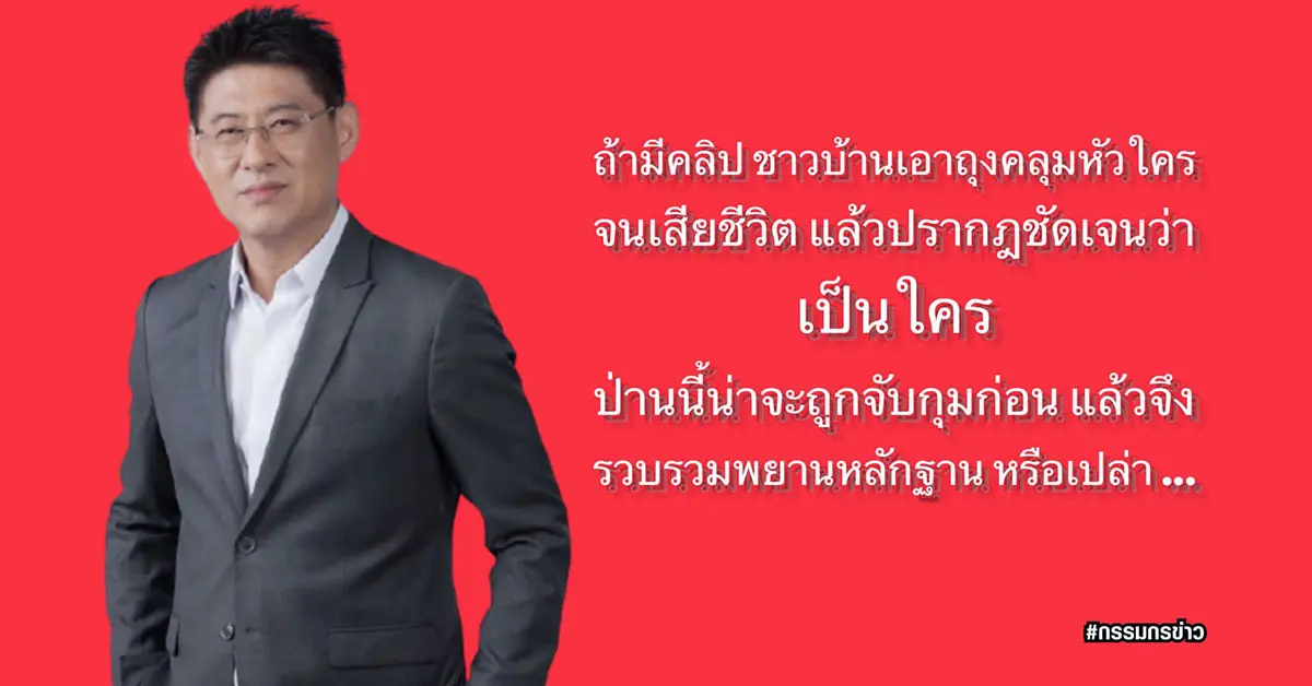 พูดตรงประเด็น และเป็นที่ถูกใจของชาวเน็ต “สรยุทธ” สุทัศนะจินดา โพสต์ ถ้าชาวบ้านเอาถุงคลุมหัวใครเสียชีวิต น่าจะถูกจับก่อน โดยโพสต์นี้ถูกแชร์กว่า 4 หมื่นครั้ง